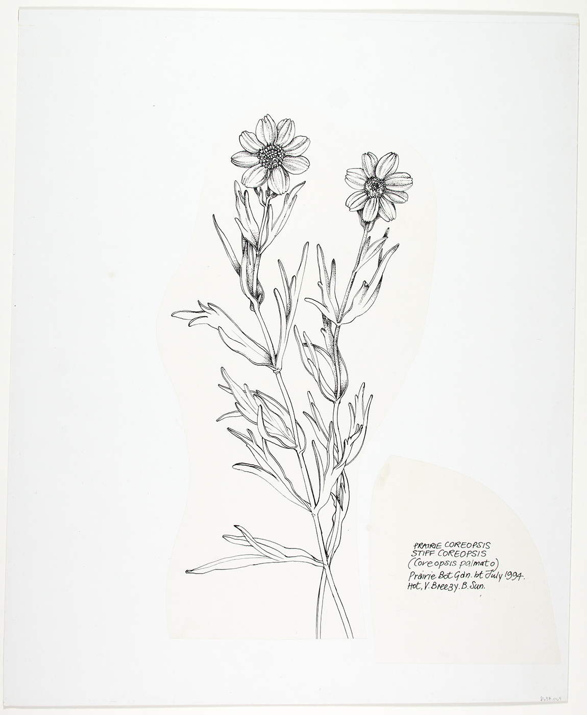 Notes: From Wild Flowers of the North Shore series; Prairie Coreopsis Stiff Coreopsis (Coreopsis palmato) Prairie Bot Gdn. bt July 1994. Hot, V. Breeze. B. Sun.