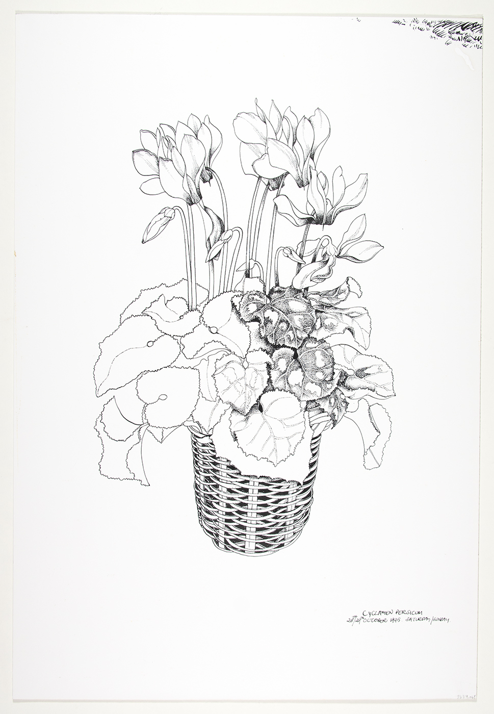 Notes: Cyclamen persicum 28th/29th October 1995. Saturday/Sunday; potted in basket