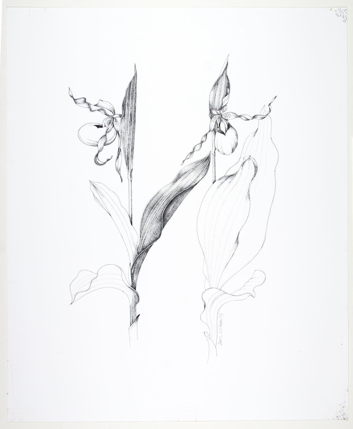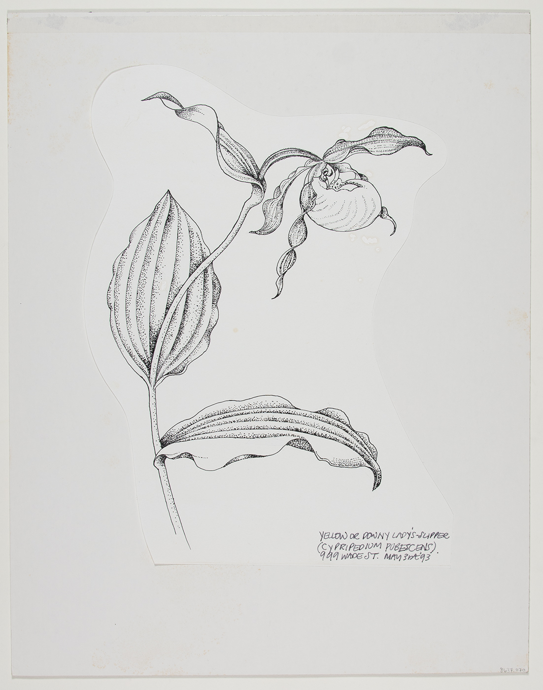 Notes: From Wild Flowers of the North Shore series; Yellow or Downy Lady's Slipper (Cypripedium pubescens) 999 Wade St. May 31st '93