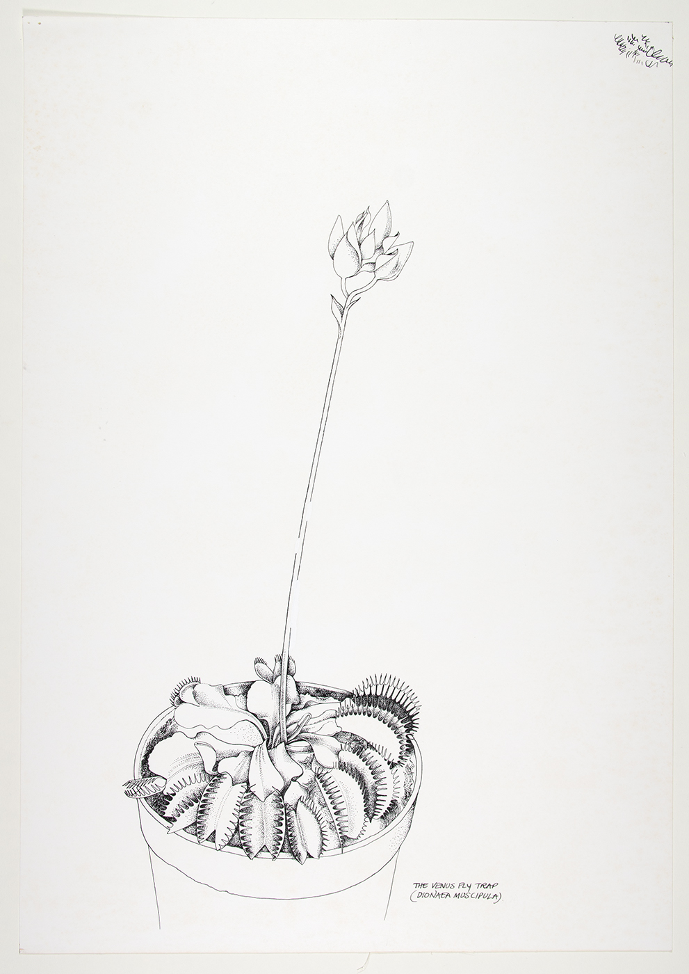 Notes: The Venus Fly Trap (Dionaea muscipula) potted and with single flowering stem